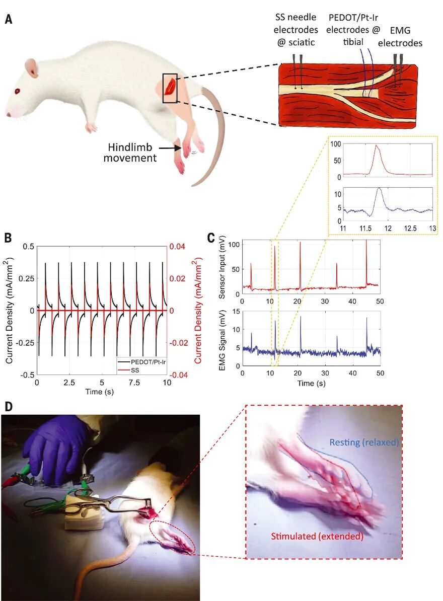 啮齿类动物演示压电离子刺激神经调节。图片来源:Science