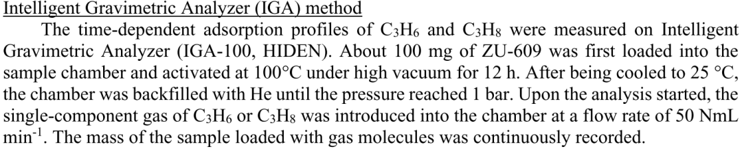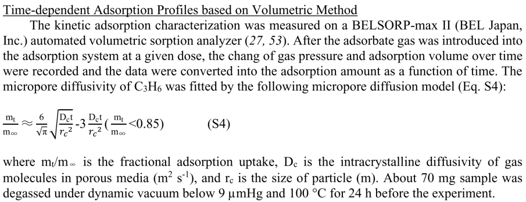 1)假设我们要分离气体A和B,最简单的方法是看吸附仪在相同条件下测试A和B的耗时。如果A几个小时测完了,B花了几十个小时。很有可能存在吸附速率的显著差异。这个方法非常的定性,在发文章里是不建议用的(当然我们也看到过文章里有用这个数据的)。