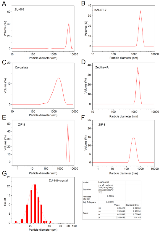 这个跟之前杨庆远教授的Angew文章里采用贝士德仪器测试的方法是差不多的。从公式来看,要想知道Dc,主要是还要知道吸附剂的颗粒大小。可以通过动态光散射的方法测试颗粒大小,如下图所示。