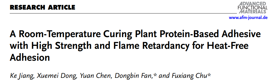 中国林科院木材所Adv. Funct. Mater. | 一种具有高强度、无热阻燃性的室温固化植物蛋白基粘合剂