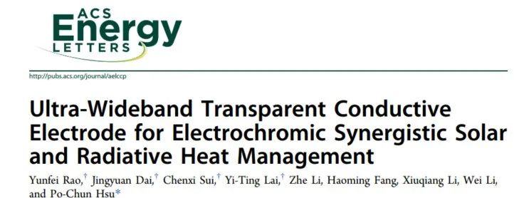 研究成果以《Ultra-Wideband Transparent Conductive Electrode for Electrochromic Synergistic Solarand Radiative Heat Management》为题发表在世界知名期刊ACS Energy Letters上。