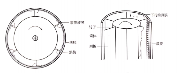 图5-9 薄膜蒸发器的基本结构及流体流动模型