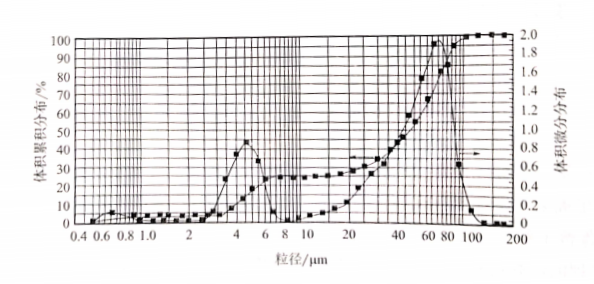 图5-7 湿法溶胀工艺制备的纺丝溶液中粒径分布图