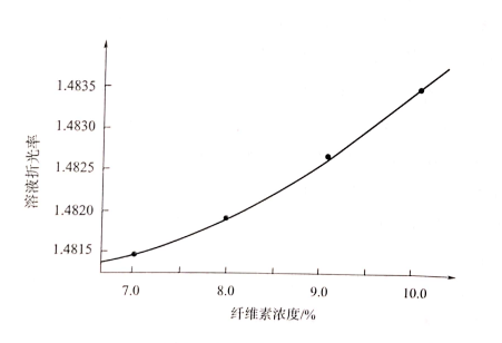 顾广兴等对NMMO体系中纤维素浓度与折光率之间的关系进行了研究,结果如图 5-13所示。