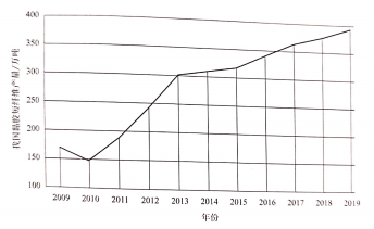 黏胶企业通过加大科研投入,优胜劣汰,改造老旧设备和工艺,使治理污染和节能减排取得了可喜的成绩,也正是因为黏胶企业的努力,使一些成功的企业生存了下来,还得到了长足的发展。尽管我们对环境治理的要求力度越来越大,在线检测等方法已经在很多地方实施,在这样日趋严格要求的条件下,我国黏胶纤维近年来仍然有较大的发展,我国近十年黏胶短纤维的产量如图8-2所示。
