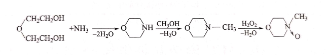 由二乙二醇与氨反应生成吗啉,再经过甲基化和氧化生成N-甲基氧化吗啉,其合成工艺路线如图4-7所示。