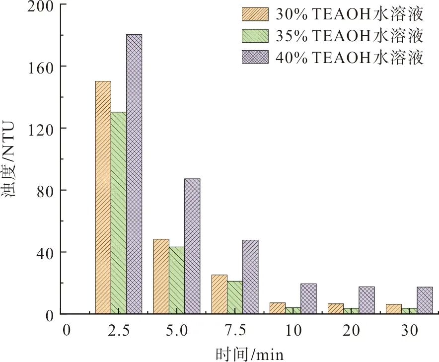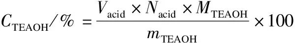 式中:Vacid为滴定所用酸体积,L;Nacid为所用酸的当量摩尔浓度,mol/L;MTEAOH是TEAOH的摩尔质量,g/mol;mTEAOH是TEAOH的待测液质量,g。