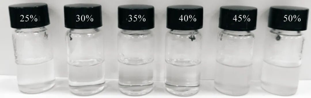图3 不同溶剂质量分数纤维素/TEAOH/H2O溶液的照片