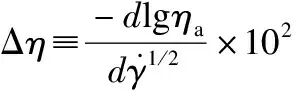 式中:ηa为表观黏度,Pa·s;γ为剪切速率,s-1。
