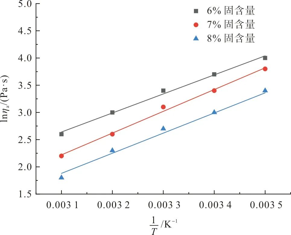 式中:A为常数,kJ/mol;R为气体常数,约为8.31 J/(mol·K);Eη表示黏流活化能,T为绝对温度。