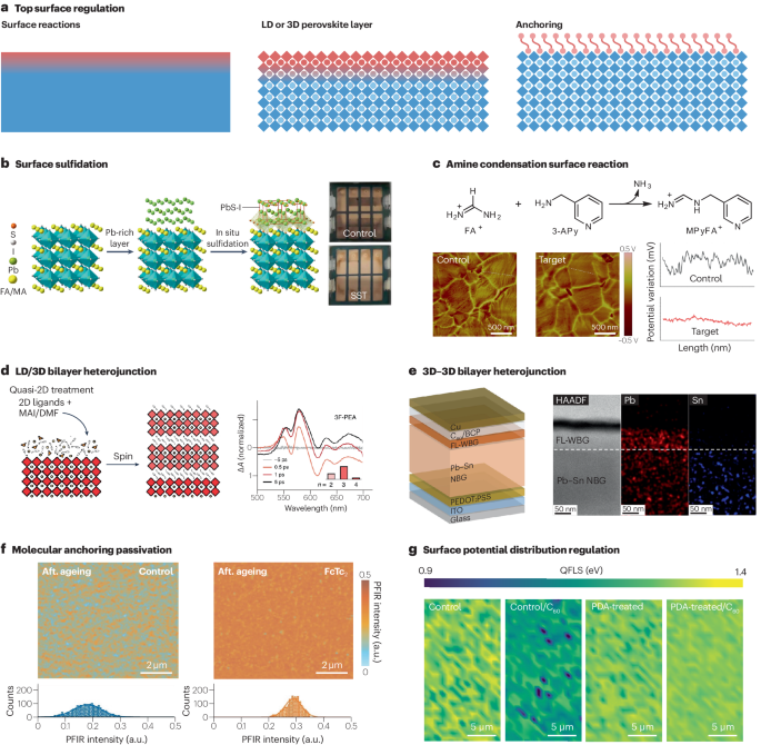 本文揭示了钙钛矿太阳能电池(PSCs)在p-i-n结构方面的长足发展和关键技术进展。通过对器件结构的演变和关键材料的优化,PSCs的功率转换效率(PCE)已达到令人瞩目的水平,并且稳定性已通过多项国际标准测试。在优化器件的过程中,特别是在界面工程、传输材料的发展和太阳能电池结构的创新方面,科学家们不断探索新的策略和方法,以提高PSCs的性能和稳定性。此外,双面太阳能电池作为一种有效的提高效率和稳定性的新方向得到了探索,其充分利用环境光来增强光吸收和能量产量。这些研究为未来的PSCs技术发展提供了重要的启示,鼓励学术界和工业界的研究人员持续关注并投入到PSCs的进一步研究和开发中,以实现更高效、更稳定的太阳能电池技术,并推动可再生能源领域的进步。原文详情:Jiang, Q., Zhu, K. Rapid advances enabling high-performance inverted perovskite solar cells. Nat Rev Mater (2024). https://doi.org/10.1038/s41578-024-00678-x