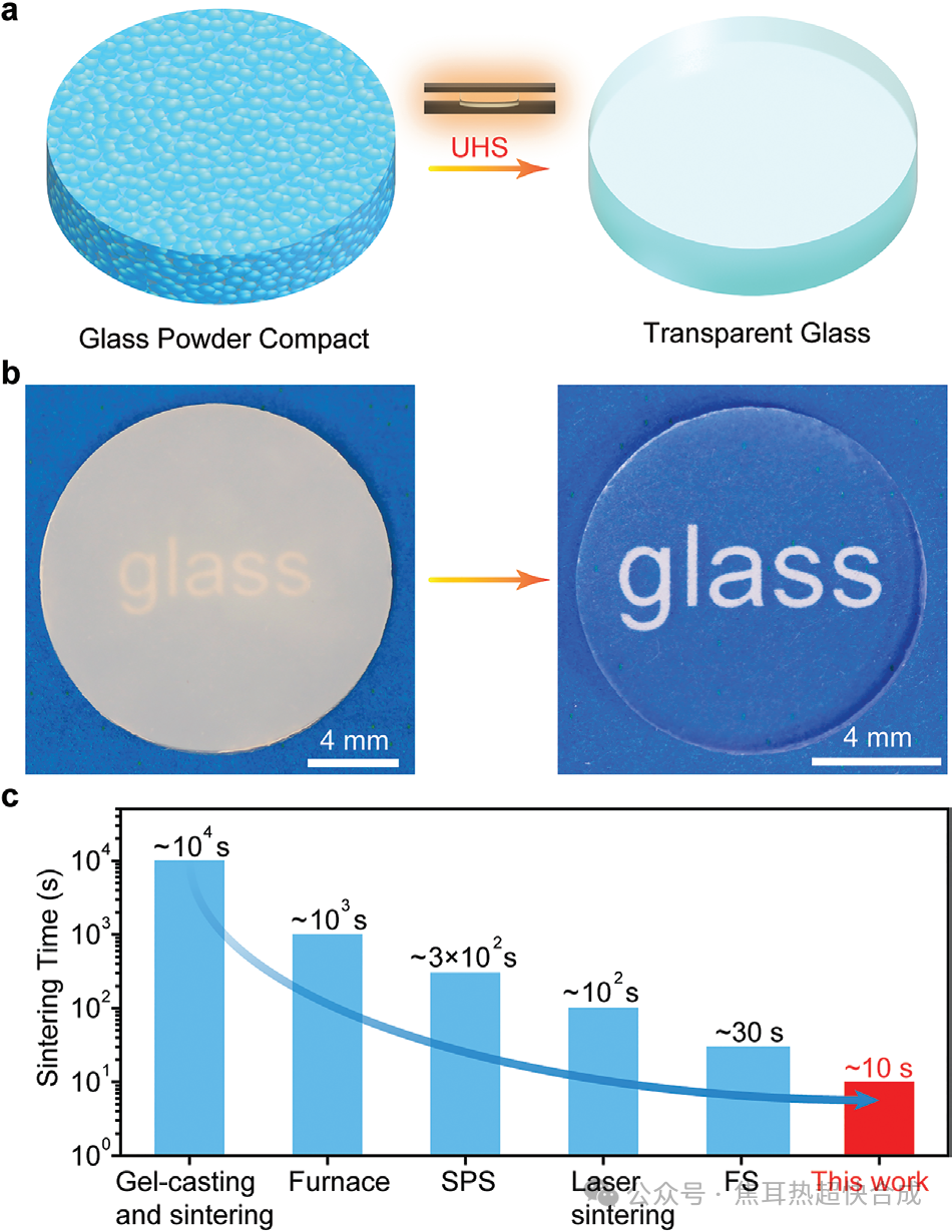(1)快速烧结时间:该方法使用超快速高温烧结(UHS)技术,将玻璃烧结时间缩短至仅约10秒,比传统方法快1到3个数量级。传统方法通常需要几个小时的热处理。