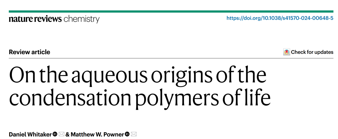 在本综述中,来自英国伦敦大学学院的Matthew W. Powner教授和Daniel Whitaker教授概述了生命起源化学方法的关键要素,这些要素可能最终成功阐明生命起源——研究生命核心化学成分是如何在水环境中通过选择性形成、相互作用和功能实现的。该综述以题为“On the aqueous origins of the condensation polymers of life”发表在《Nature Reviews Chemistry》中。