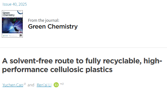 Green Chem.丨实现完全可回收的高性能纤维素塑料的无溶剂途径