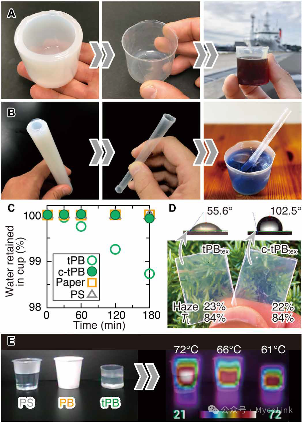 杯与吸管状tPB透明防水,可盛热饮;涂层后防渗与隔热性能增强。