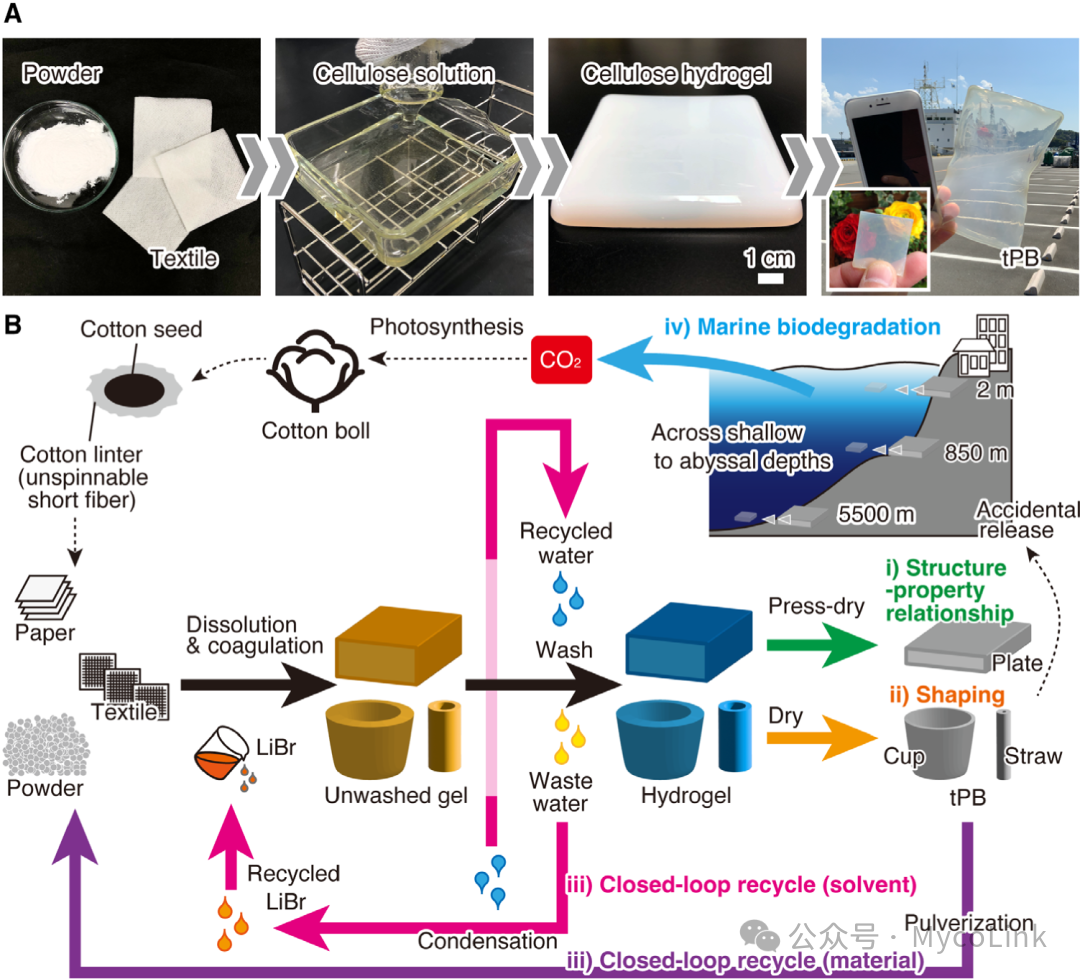 tPB的再生体系兼顾溶剂与材料循环。废弃tPB经粉碎可重新溶解成型,透明度与力学性能几乎不变。LiBr溶液通过蒸馏与活性炭净化实现回收,洗涤水亦可循环使用。废纸、旧纺织物同样可作为原料转化为tPB,形成可持续闭环。