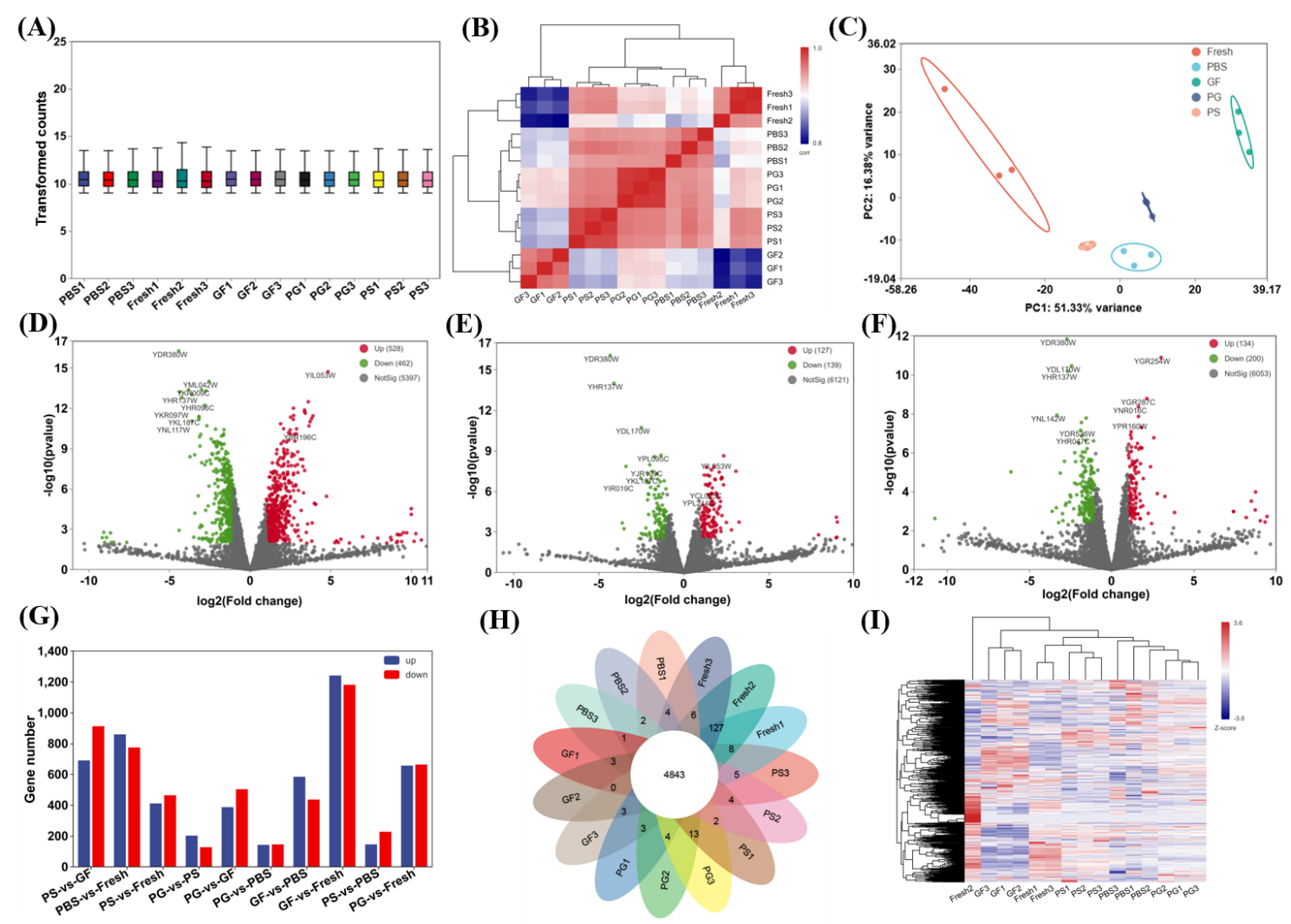 图2. 不同冷冻保存酵母的转录组分析结果