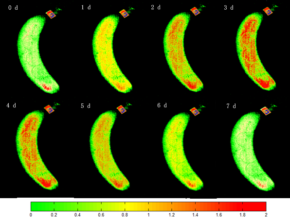 荔枝果皮水分分布可视化图 香蕉成熟过程中维生素A含量可视化
