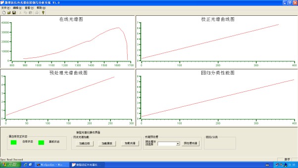 采用VC、OpenCV与GDAL开发了基于高光谱的肉品/果蔬质量快速预测原型装备及其控制与高光谱信息处理系统,采用高光谱成像系统倒置安装在输送带下方,解决样品厚度变化对焦距的影响,可实现数据校正、光谱采集、指标预测、在线分类以及可视化,动态检测速度达到30mm/s,测量误差小于3%,突破了农产品前处理加工过程内外部品质难以同时在线检测和多信息综合决策的难题。该装备应用于荔枝品质在线分拣照片如图7所示。开发了基于近红外微型光谱仪的养殖环境检测器及其控制系统如图8所示。