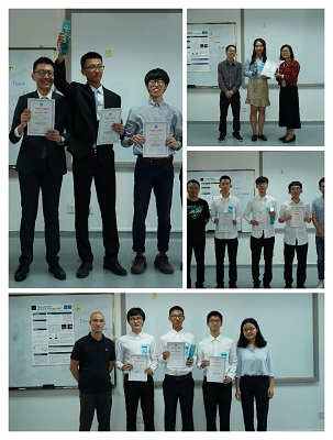 不久,万众期待的颁奖时刻到了。首先,Tan Chou Yong 老师感谢各位评委的支持,给各位评委颁发了感谢证书。接着是颁发个人及团体奖项:“最佳海报”由Smiling Pasta队获得,“最佳展示者”由龚晨获得,5G队和Air Folding1队分获第三名和第二名,而第一名最终花落210000队。拿着学院颁发的奖状和奖杯,接受着老师和同学们的掌声与欢呼,获奖的同学们都特别开心和自豪。