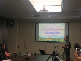 2018年8月10日,德克萨斯大学圣安东尼奥分校(University of Texas at San Antonio)、ACS Materials & Interfaces的主编Kirk Schanze教授到访广东省先进储能材料重点实验室,并为本实验室师生进行了题为Chromophore-catalyst assemblies for solar fuels 的精彩学术报告。Kirk Schanze教授在报告中详细介绍了太阳能燃料电池的研究背景及研究进展,同时讲解与太阳能燃料电池相关的专业知识,并针对太阳能燃料电池面临的挑战和研发高性能太阳能燃料电池提出了见解。实验室王辉教授和胡仁宗教授向Kirk Schanze教授介绍储氢材料和锂离子电池方面的研究工作。
