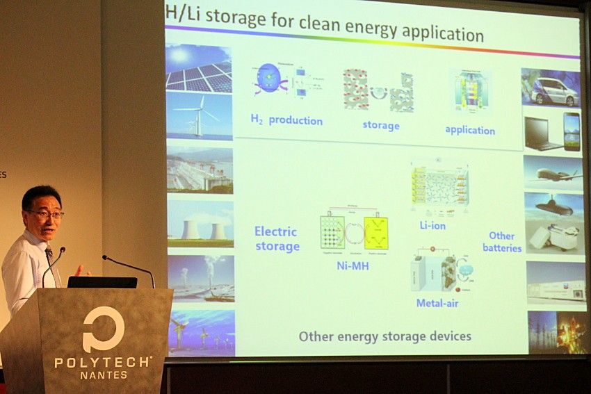 我重点实验室访问团得到了南特大学的热情接待。在双边研讨会上,朱敏、欧阳柳章、胡仁宗、杨黎春4位教授分别介绍了重点实验室在Mg基储氢材料热力学和动力学调控、储氢材料水解制氢与再生、Sn基储锂负极材料、Mo基钠电负极材料等方面的最新工作进展。而南特大学Polytech的Thierry Brousse,Olivier Joubert, Bruno Auvity, Bernard Lestriez, Olivier Crosnier等6名教授则分别介绍了他们在固体氧化物燃料电池、PEM燃料电池物质传输流道设计、Si基锂电负极材料、超级电容器材料与设计等方面的研究进展。双方与会人员针对各种具体学术问题进行深入交流和讨论。