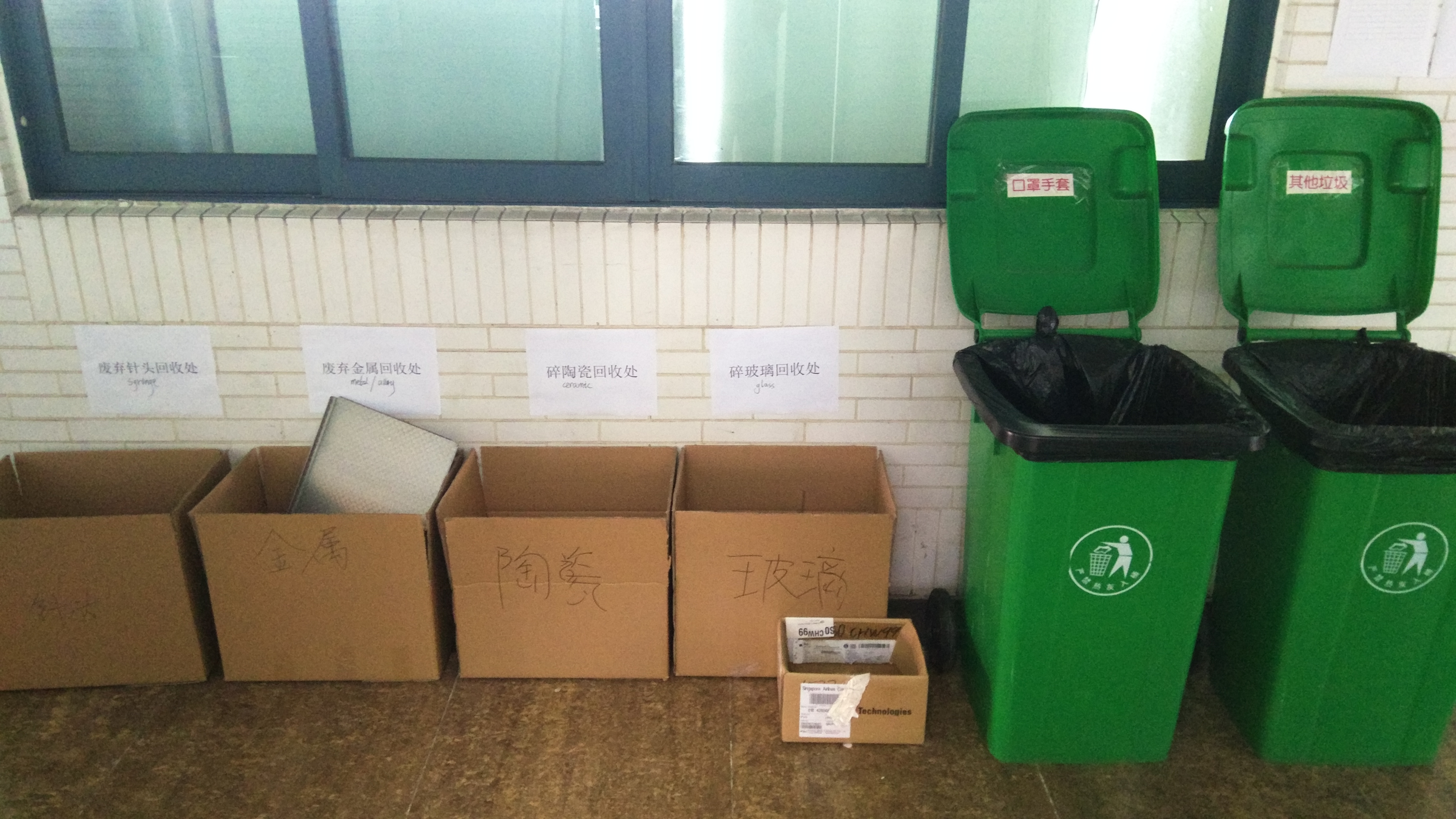 4.12 对于废弃针头、破碎的玻璃器皿等锐器需放入纸箱,单独存放。