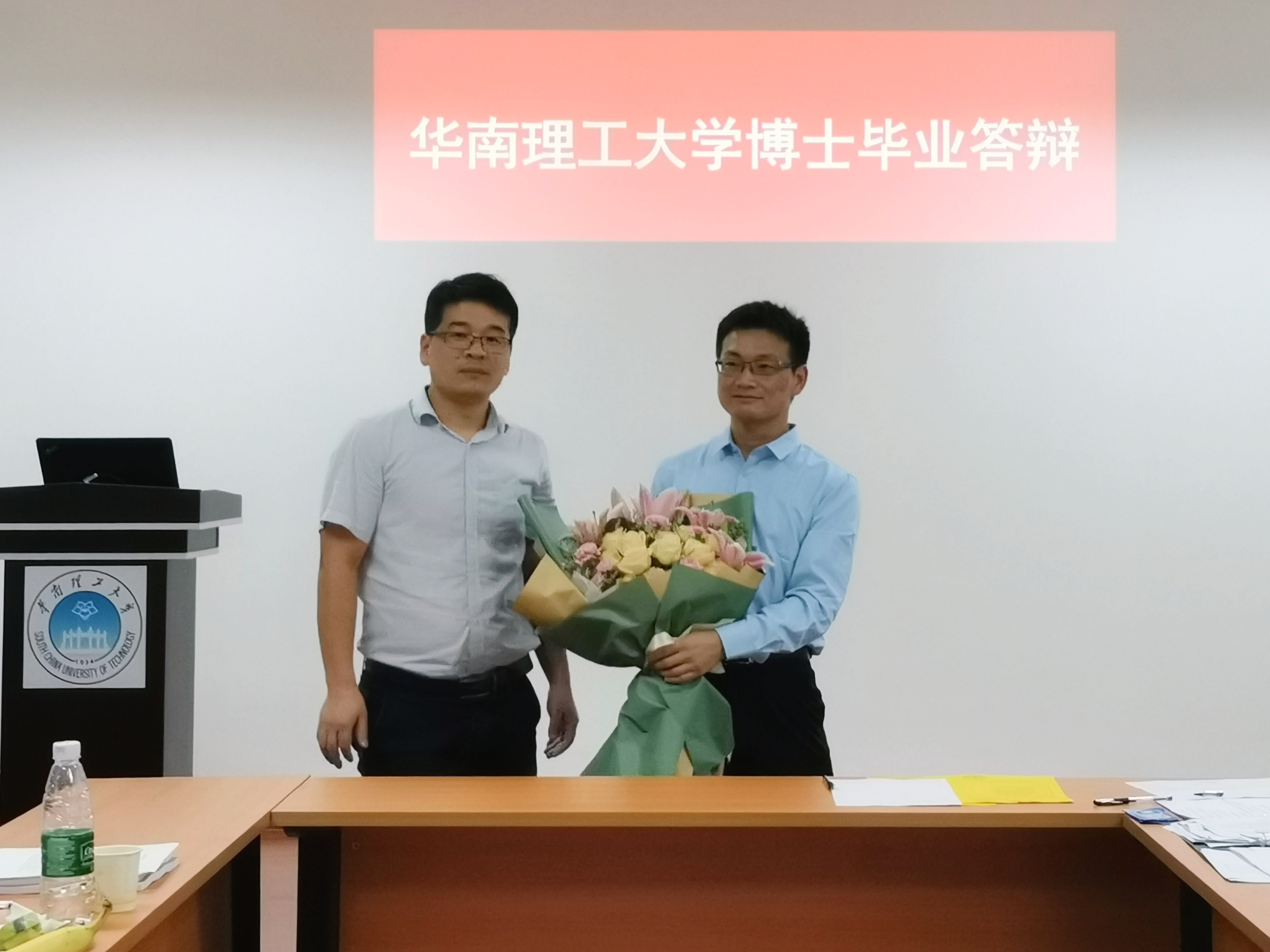 2019年9月5日下午,华南理工大学南校区B5三楼会议室举行了博士论文答辩会。许希军博士答辩的题目为“基于转换反应的铁基电极材料的结构设计及其锂离子存储性能”,指导老师为刘军教授。担任本次论文答辩委员会的主席是来自中山大学的孟跃中教授,委员有华南师范大学的舒东教授、暨南大学的麦文杰研究员、华南理工大学的朱敏教授和刘军教授。许希军博士用40分钟的时间生动地介绍了硫化亚铁、磷化铁与氟化铁等电极材料体系的结构设计方案与电化学性能。通过巧妙的结构设计,铁基电极材料的容量、循环稳定性与库伦效率等性能得到显著提高。其中,在碳布上生长铁基材料纳米管状阵列的独特设计使得FeP@C和FeF3@C成为性能优异的柔性电极材料,有望在可折叠电子设备等领域得到应用。随后,答辩委员会对许希军博士学位论文进行了充分交流。答辩委员会充分肯定了许希军博士在博士期间扎实的科研工作与丰富的研究成果,并围绕其博士期间的工作与博士学位论文提出了中肯的意见与建议。经过约一小时的答辩,许希军博士顺利通过博士论文答辩。