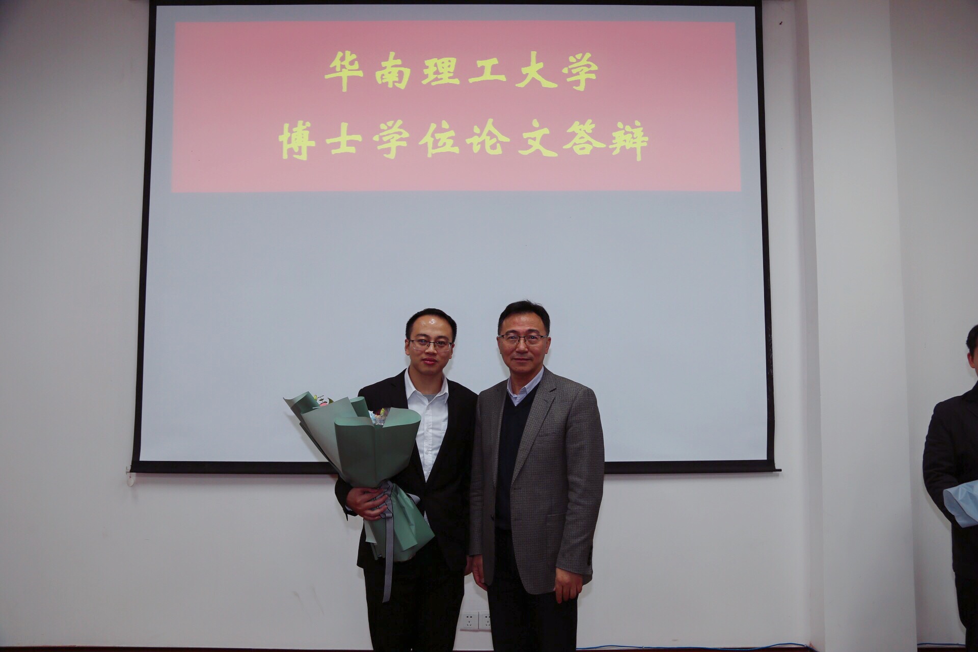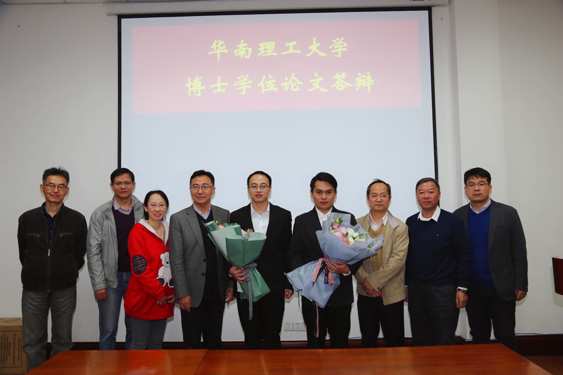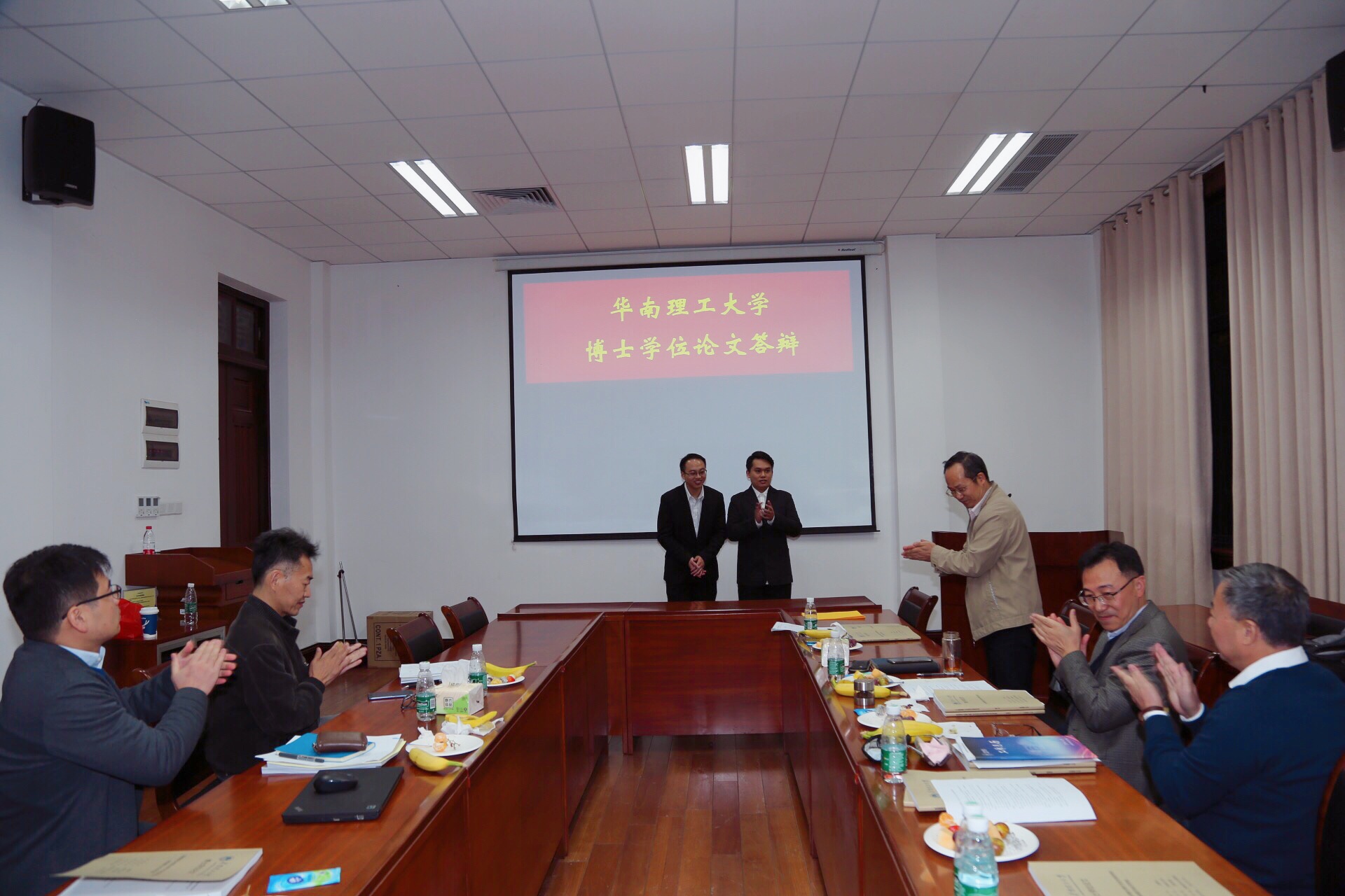 答辩委员会主席杨元政教授祝贺程得亮博士、黎子鸣博士通过博士论文答辩