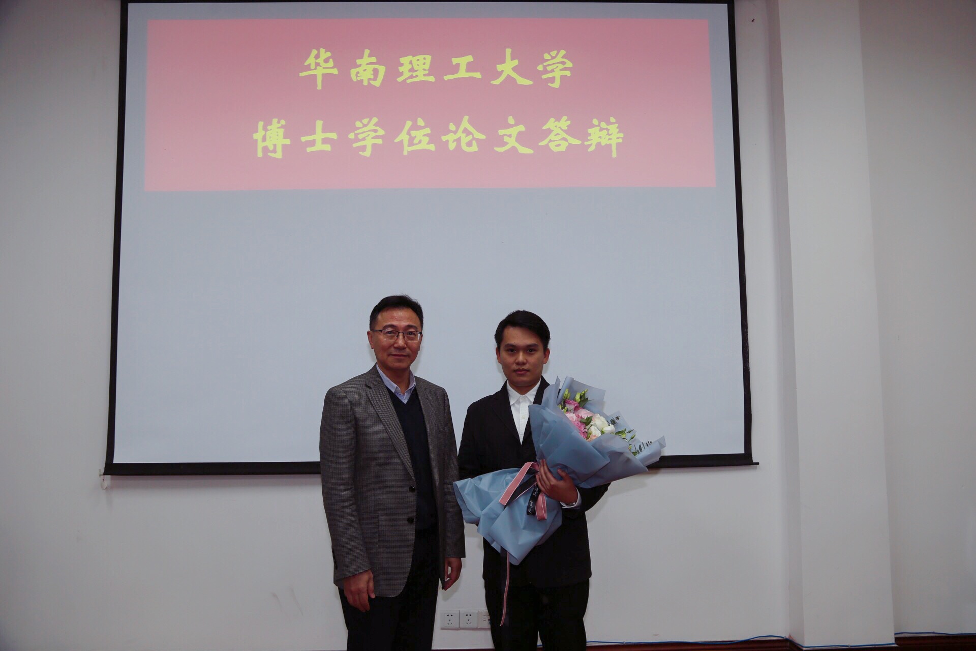 答辩委员会主席杨元政教授祝贺黎子鸣博士、程得亮博士通过博士学位论文答辩