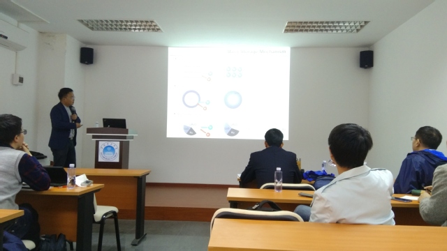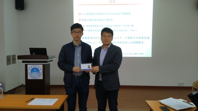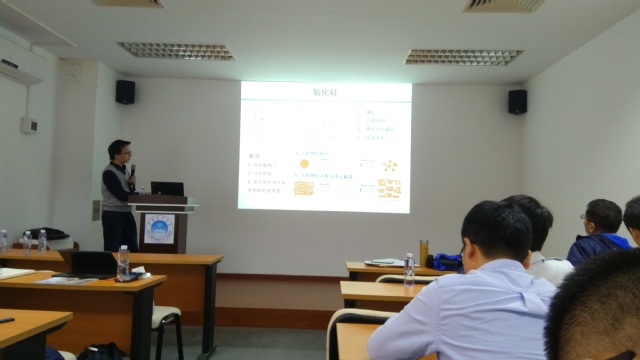 中南大学吴飞翔教授做了题为“Conversion cathodes for lithium and lithium-ion batteries”的学术报告。在报告中,结合具体的实验研究,详细地介绍了多种正极材料的储锂机理,包括单相反应机制的LiCoO2正极材料,两相反应的LiFePO4正极材料,以及多相反应机制的LiRuO2正极材料。并提出以转化反应为主的氟化物作为正极在体积和重量上具有很大优势。在锂-硫电池研究中吴飞翔教授简单介绍了固液比对电池性能的影响。并在转化反应正极材料结构调控和机理研究上就C-Li2S,S-有机柠檬酸作为正极材料做了精彩的讲解。最后,吴飞翔教授也针对降低电解液锂盐溶度来提高电池倍率性能的工作向老师和学生做了详细的介绍。