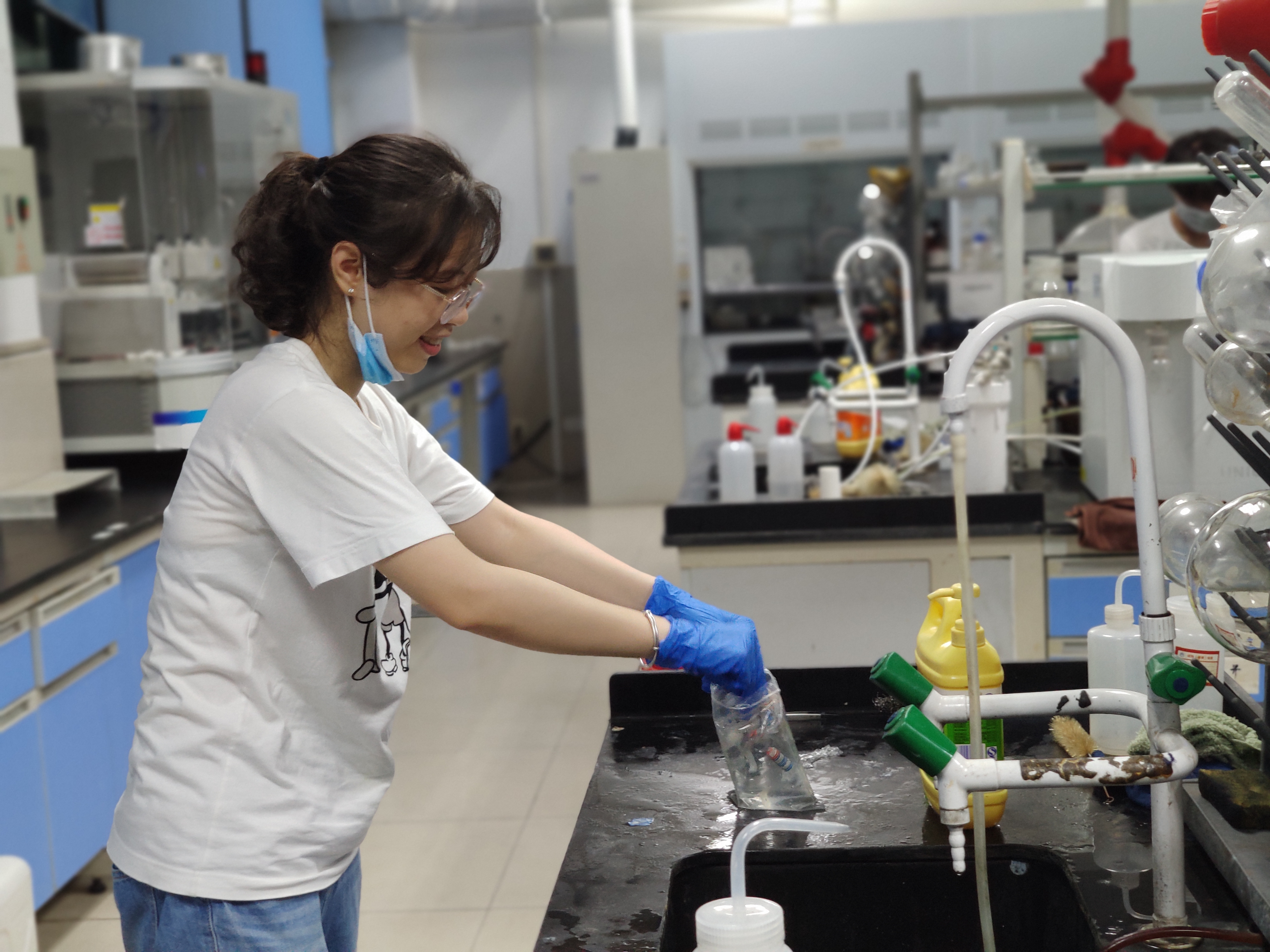 毕业生覃称蕾欢送会结束后正在清理自己的样品