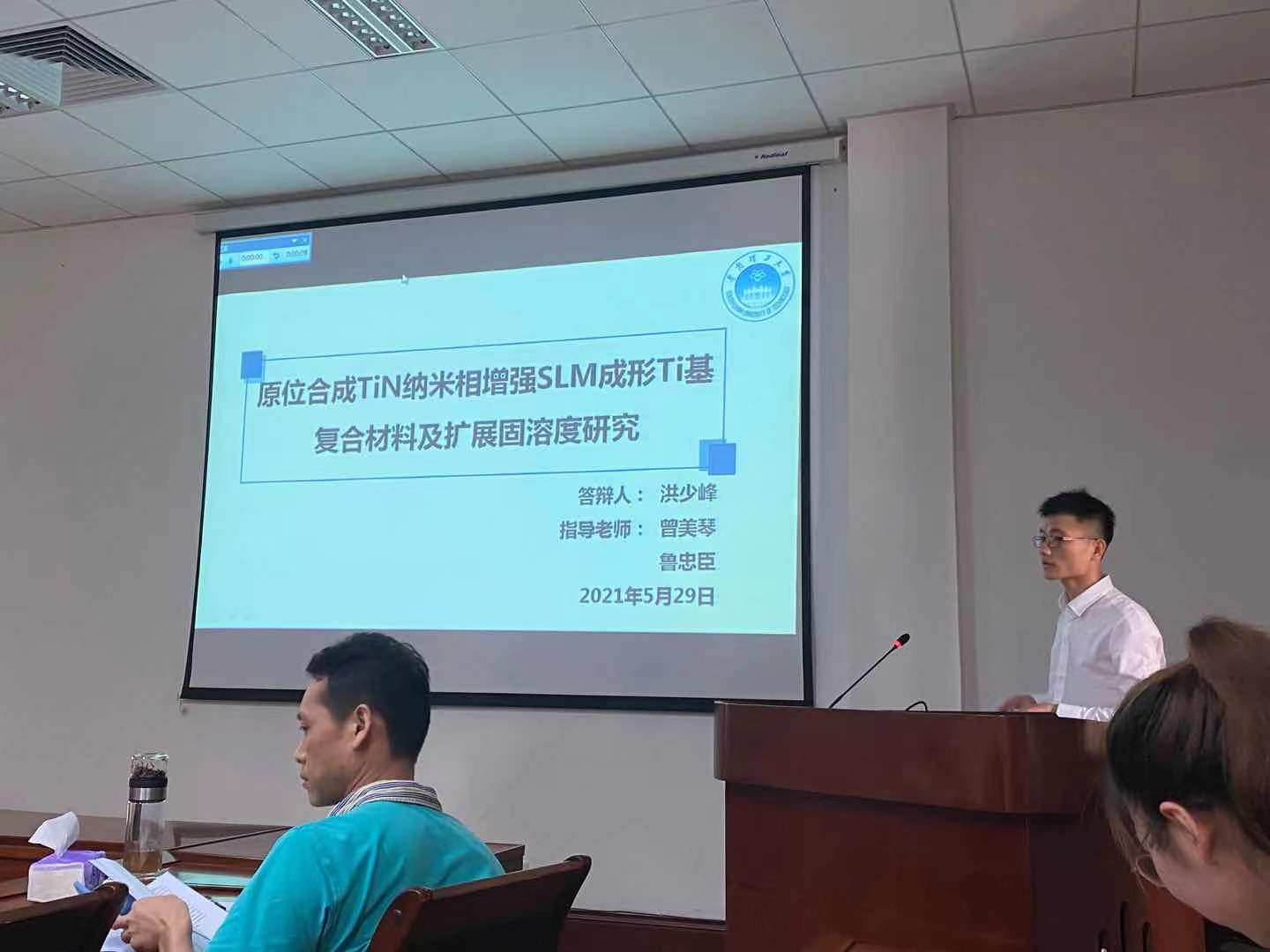 2021年5月27日下午以及29日上午,华南理工大学金属系硕士研究生毕业答辩分别在大学城校区B5-307会议室和五山校区8号楼201会议室举行。本课题组2018级硕士生吴海燕、李钰、曾立艳、陈敏、廖文芳、杜星阳、林柞鹏、韩文芳、李朋、魏梦瑶、方志坤、张峻豪、刘员环、洪少峰参加答辩。经过同学们精彩的答辩,本组2018级硕士生均顺利通过答辩。