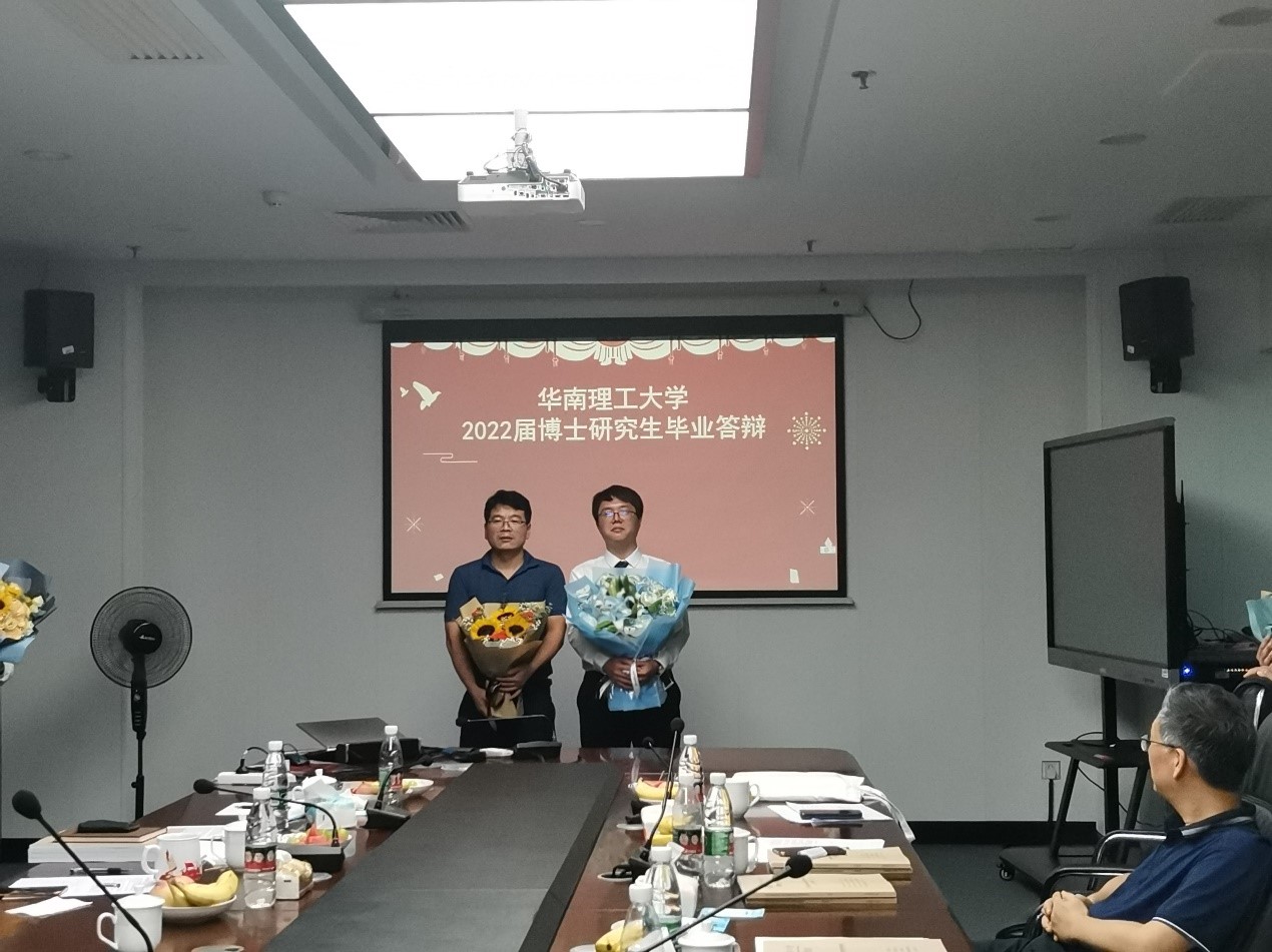 答辩委员会主席苏成勇教授祝贺刘政波等四位博士研究生通过博士学位论文答辩