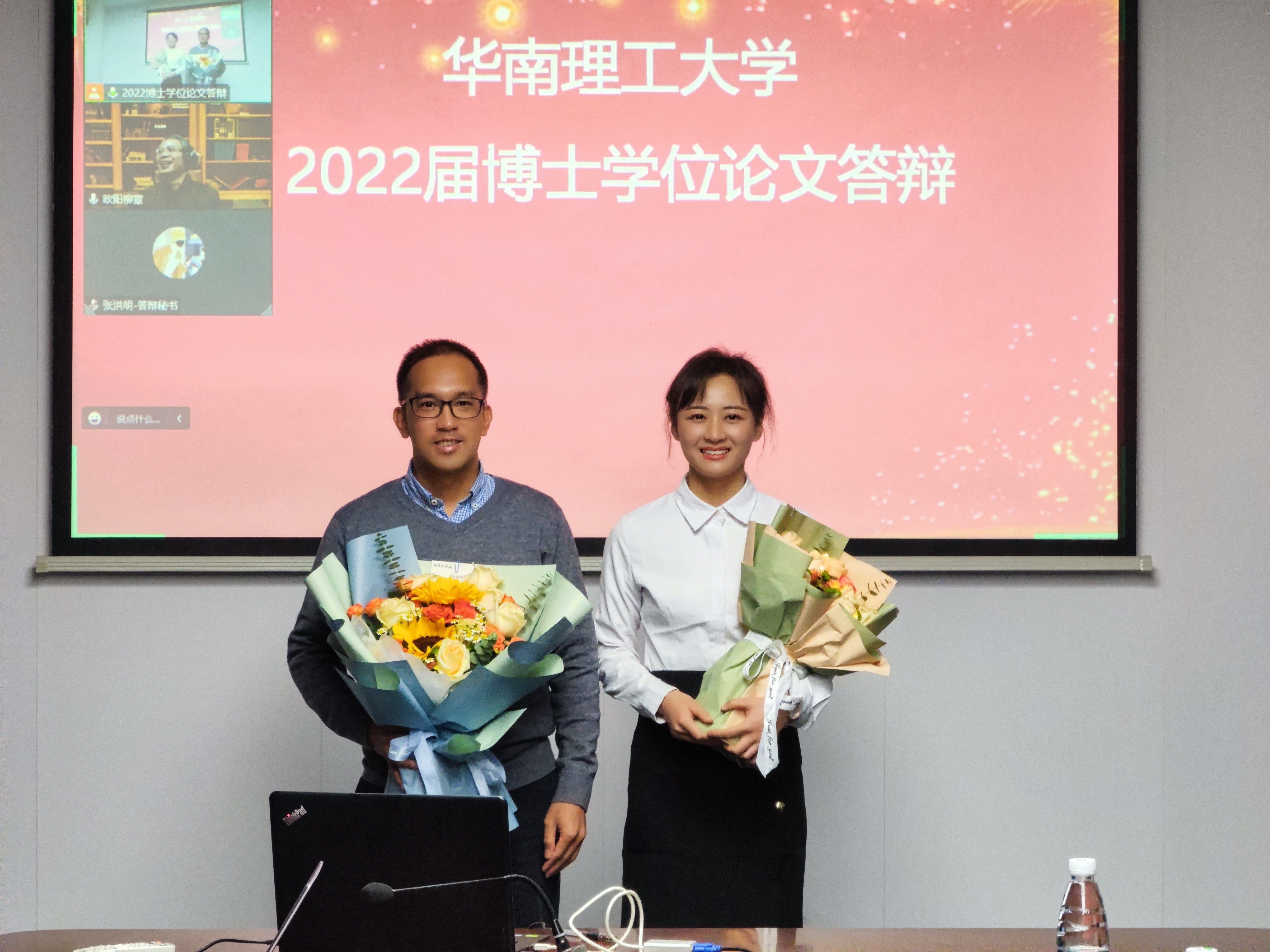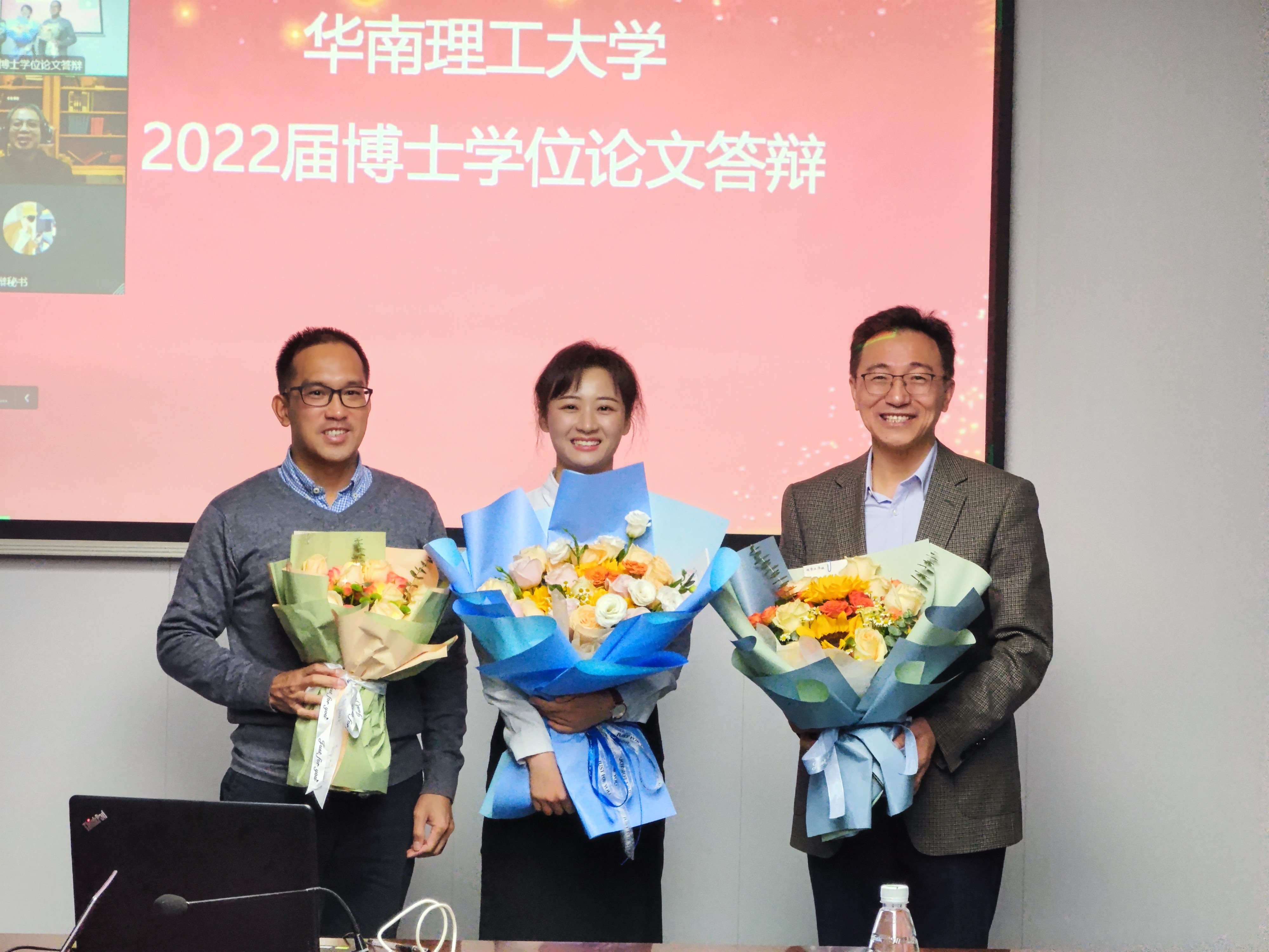 2022年12月3日,华南理工大学B5-102会议室举行了兰雪侠等四位博士研究生的博士学位论文答辩。兰雪侠博士答辩的题目为“锡基储锂负极材料的表/界面结构设计与性能调控”,指导老师为胡仁宗教授。担任本次论文答辩委员会主席的是来自广州大学的牛利教授,委员有来自华南师范大学的兰亚乾教授,华南理工大学的朱敏教授、欧阳柳章教授、王辉教授、胡仁宗教授和刘军教授。来自华南理工大学的张洪明博士后担任答辩秘书。兰雪侠博士用约40分钟的时间,围绕锡基负极材料电极-电解液界面稳定性、电极体相界面结构稳定性、表/界面上Li+扩散速率等问题,对其博士期间的工作进行了阐述。随后,答辩委员会对其博士期间的研究内容及博士学位论文进行了交流。各位委员充分肯定了兰雪侠博士在攻读博士学位期间的工作成果,并围绕其博士学位论文提出了不少中肯的意见与建议。经过约一个小时的答辩,兰雪侠博士顺利通过博士学位论文答辩。