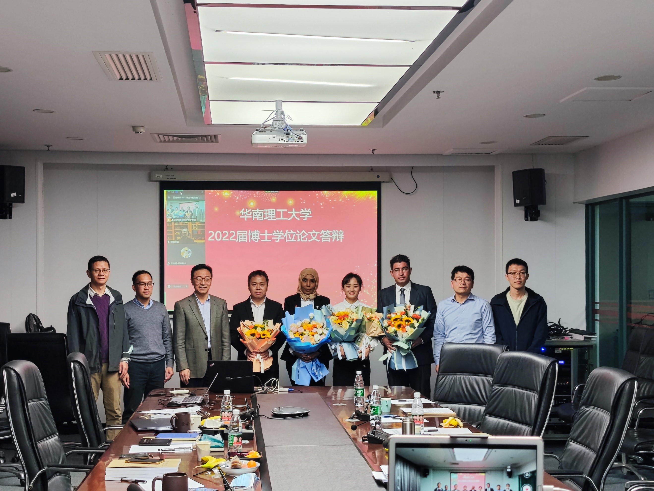 Sahar Osman等四位博士与答辩委员会专家合影