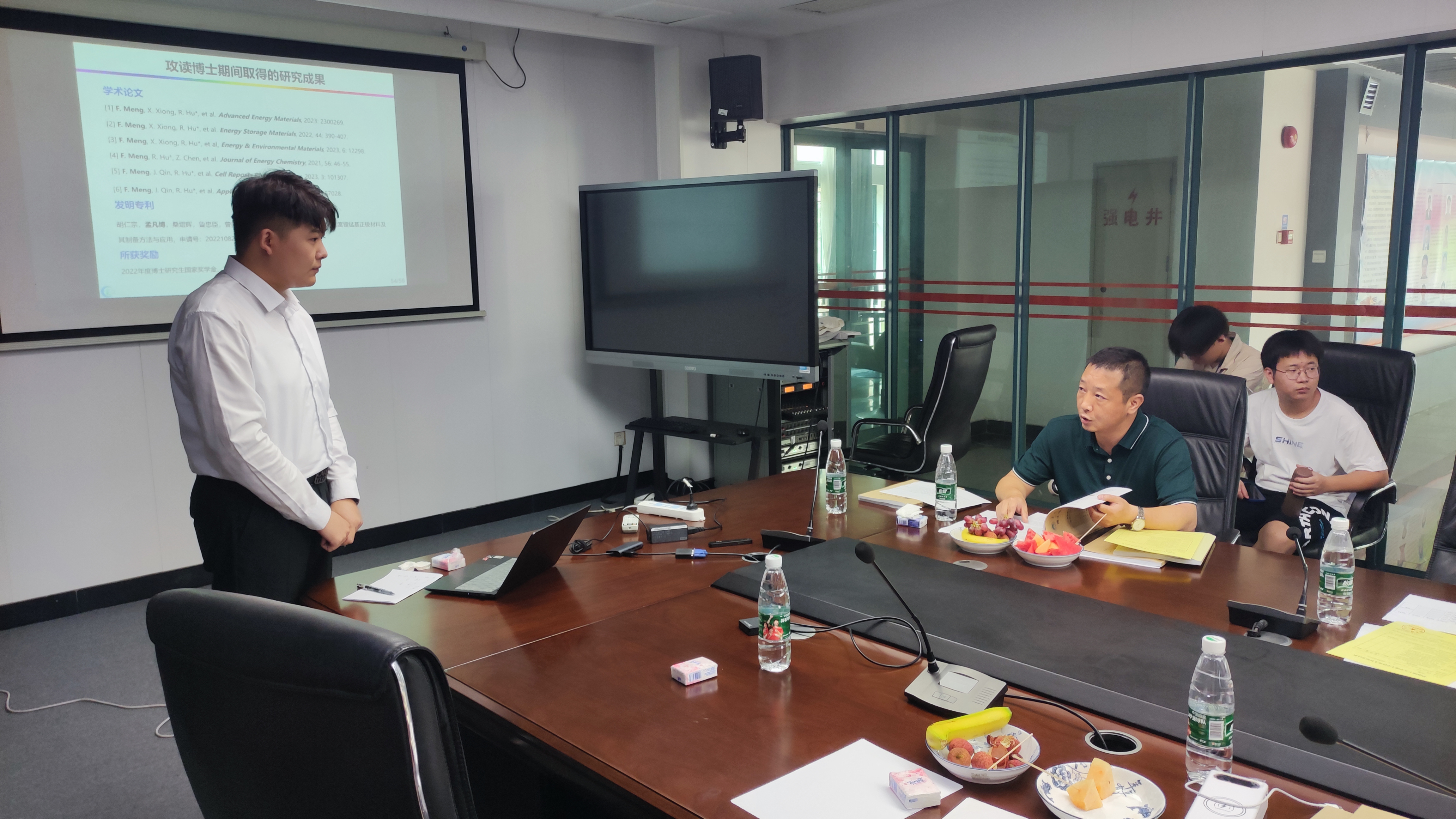 2023年6月2日,孟凡博等五位博士研究生在华南理工大学大学城校区B5-102会议室举行了博士学位论文答辩。孟凡博博士的答辩题目为“锡基催化剂的制备及其在锂-氧气/氮气电池中的应用基础”,指导老师为胡仁宗教授。华南理工大学的朱敏教授担任本次论文答辩委员会主席,委员会委员有华南理工大学的欧阳柳章教授、广东省科学院资源利用与稀土开发研究所的肖方明高级工程师、广东电网公司电力科学研究院的聂铭高级工程师、华南理工大学的刘军教授、胡仁宗教授及袁斌教授。华南理工大学的专职副研究员刘雨轩担任答辩秘书。孟凡博博士围绕SnS2和SnO2催化剂的催化机制、锂氧电池的表面吸附过程、锂氮电池的多步氮还原过程,用约35分钟的时间对自己博士期间的工作内容进行了阐述。随后,答辩委员会对其博士期间的研究内容进行了质询及讨论,各位成员肯定了孟凡博博士在攻读博士学位期间的工作成果,并围绕了其博士学位论文提出了意见与建议,经过约55分钟的答辩,孟凡博博士顺利通过博士学位论文答辩。