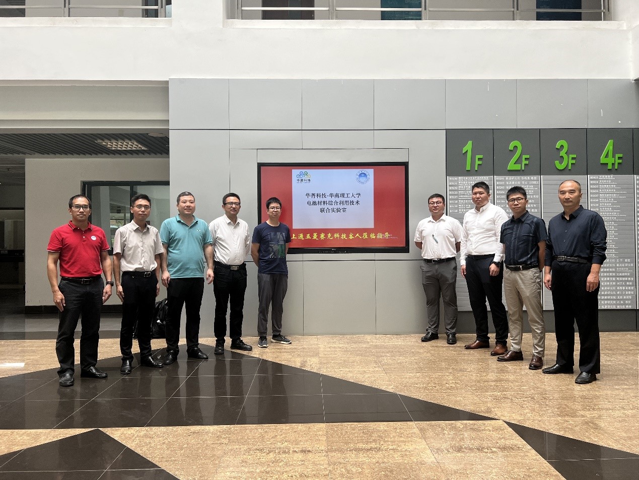 2023年10月18日上午,上汽通用五菱赛克科技创新发展中心电池系统专家黄祖朋、经理张菲、经理孙瑞涛与华菁新能源科技有限公司总经理陶志军、副总经理林荣任、副总经理朱永利、行政总监罗家庆一行来访本实验室,参观实验室并进行技术交流。