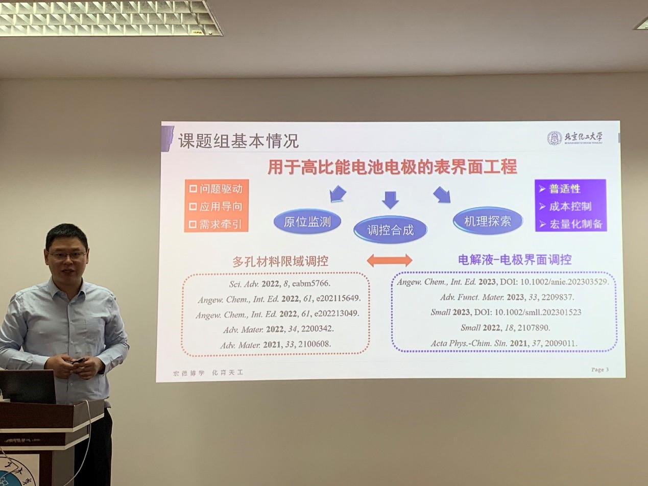 2023年11月25日上午9时30分,北京化工大学于乐教授到访本实验室进行学术交流,并并在大学城B5副楼三楼会议室给实验室的师生分享了题目为“面向高比能电池材料的表界面工程”的学术报告。