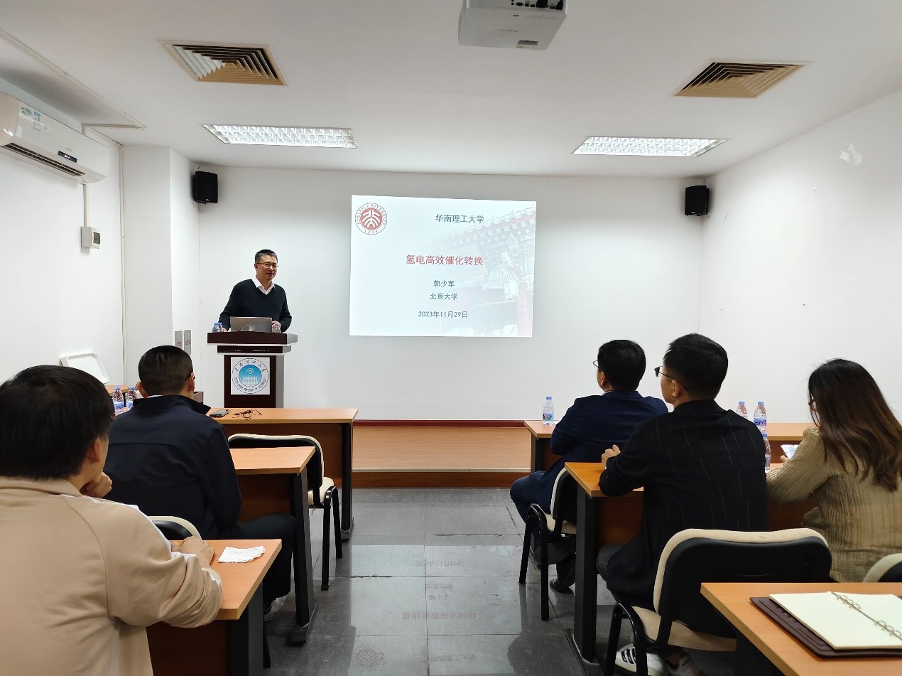 2023年11月29日下午2时30分,北京大学郭少军教授到访本实验室进行学术交流,并在大学城B5副楼三楼会议室给实验室的师生分享了题目为“氢电高效催化转化”的学术报告。