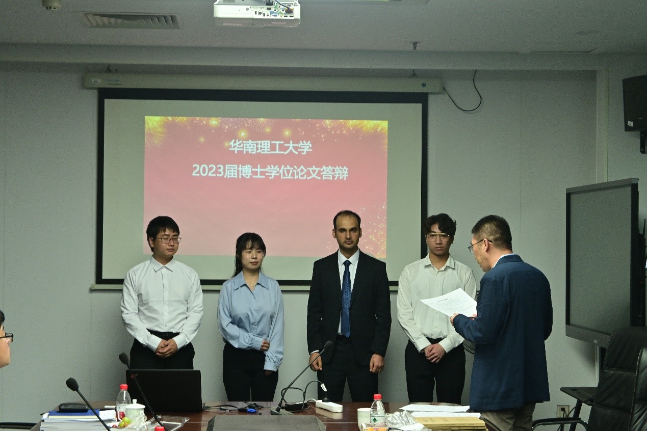 2023年12月4日,黄文杰等四位博士研究生在华南理工大学大学城校区B5-102会议室举行了博士学位论文答辩。黄文杰博士的答辩题目为“α-MoO3基水系二次电池中的质子存储机理与机理”,指导老师为杨黎春教授。华南师范大学的兰亚乾教授担任本次论文答辩委员会主席,委员会委员有暨南大学的杨小健研究员、中山大学的刘书乐副教授、华南理工大学的王辉教授、华南理工大学的袁斌教授、华南理工大学的刘军教授、华南理工大学的杨黎春教授。华南理工大学的专职副研究员刘雨轩担任答辩秘书。黄文杰博士围绕α-MoO3材料的结构改性及质子存储机理、新型高能水系二次电池的构建,用约35分钟的时间对自己博士期间的研究内容进行了阐述。随后,答辩委员会对其博士期间的研究内容进行了质询及讨论,各位成员肯定了黄文杰博士在攻读博士学位期间的工作成果,并围绕了其博士学位论文提出了意见与建议,经过约60分钟的答辩,黄文杰博士顺利通过博士学位论文答辩。