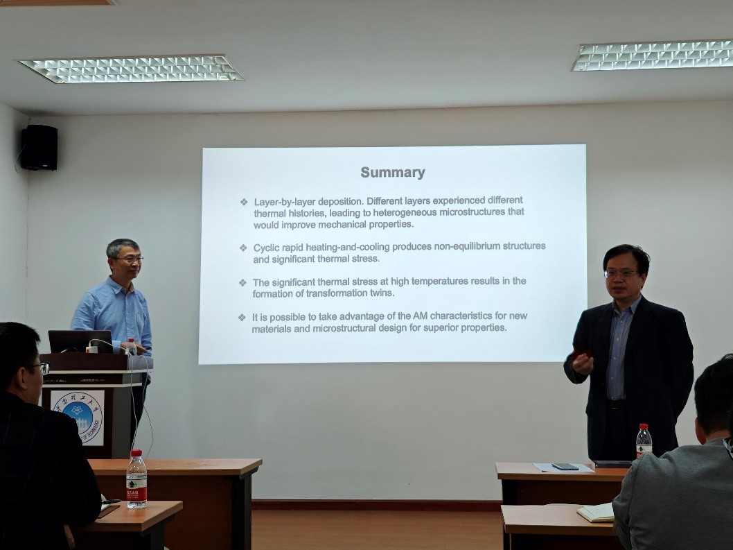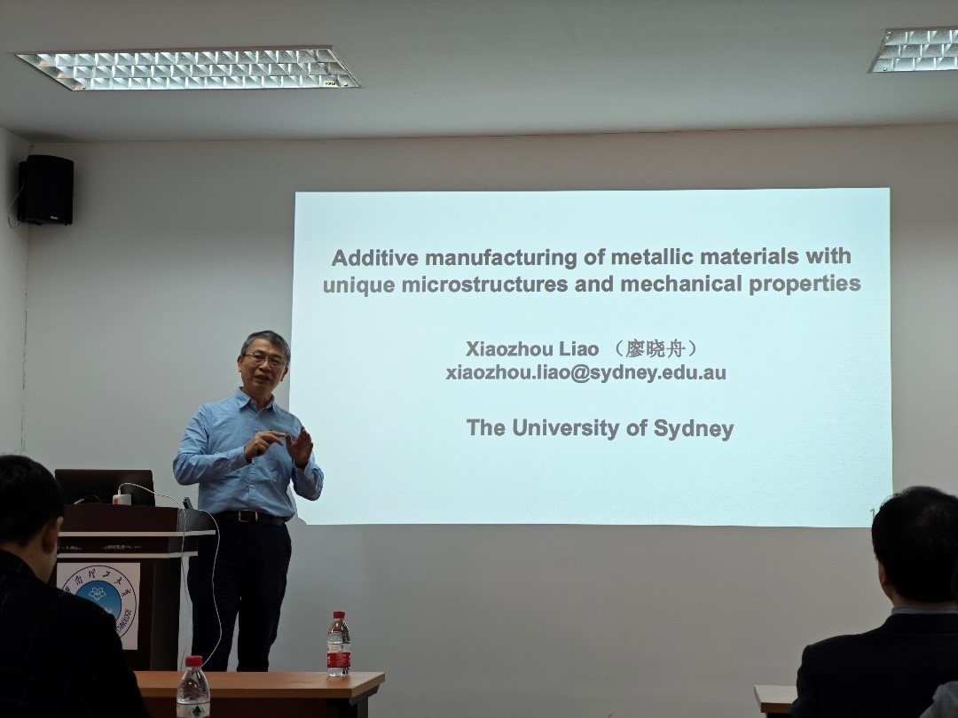 2024年1月7日上午10时,悉尼大学廖晓舟教授到访本实验室进行学术交流,并于大学城B5副楼三楼会议室给实验室的师生分享了题为“Additive manufacturing of metallic materials with unique microstructures and mechanical properties” 的学术报告。