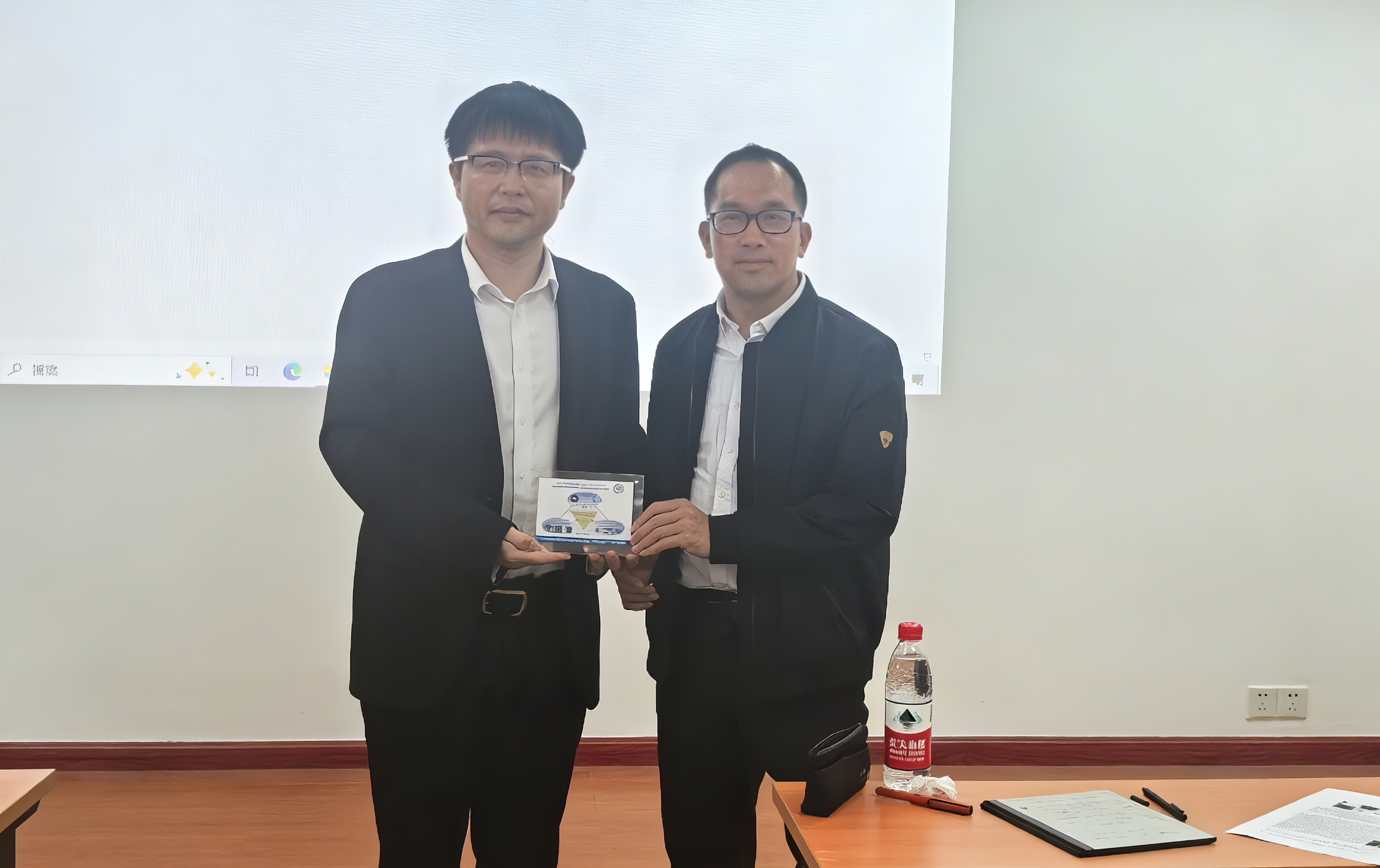 胡仁宗教授(右)向张铁锐研究员(左)赠送实验室纪念牌