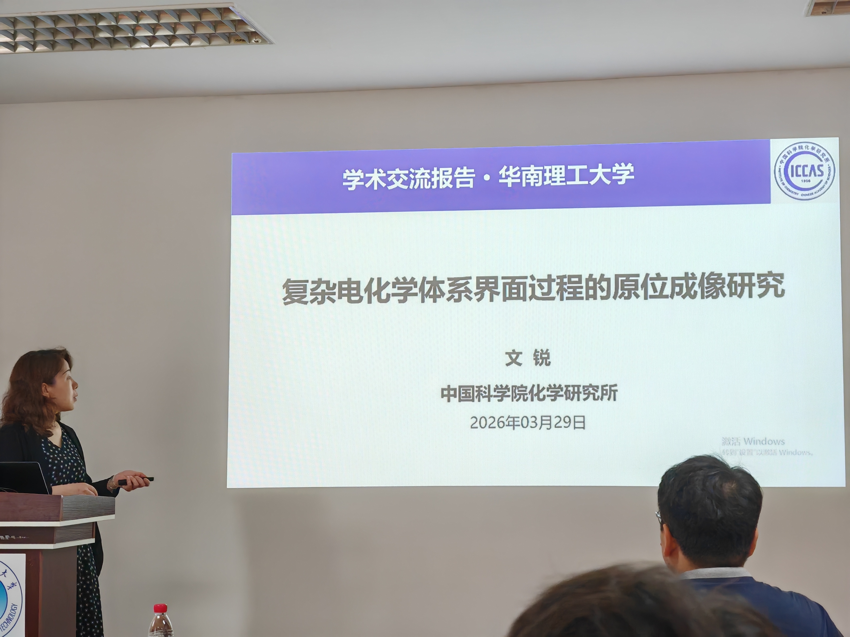 2026年3月29日上午10 时许,中国科学院化学研究所文锐研究员到访本实验室进行学术交流,并在华南理工大学大学城校区B5栋副楼三楼会议室为实验室师生带来了题为“复杂电化学体系界面过程的原位成像研究”的学术报告。