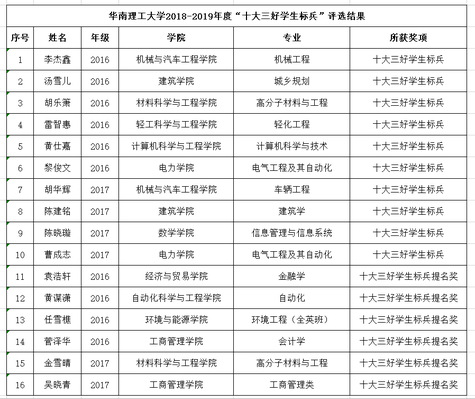 附:华南理工大学2018-2019年度“十大三好学生标兵”名单