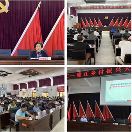 调研组首先来到镇会议室,进行了“华工-隆江乡村振兴大讲堂”第二讲,由马克思主义学院李旭辉副教授为县镇有关领导及驻村第一书记共100余人讲授《解放思想是改革开放的“总开关”——基于改革开放以来四次大争论的视角》。授课前刘琪瑾做了开班讲话,她表示,开办华工-隆江大讲堂的目的在于充分发挥华南理工大学一流高校的科技、人才、智力优势,帮助隆江镇乃至惠来县培训乡镇干部,培养脱贫攻坚和乡村振兴的当家人和行家里手,为孔美留下永远不走的驻村工作队,建立防返贫的长效机制。她希望各位学员珍惜难得的学习机会,学有所成,知行合一,在轰轰烈烈的脱贫攻坚主战场上,不断绽放出属于自己的精彩。