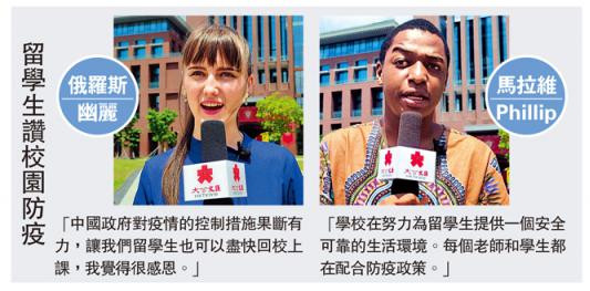 俄罗斯留学生幽丽告诉记者,她很赞赏前期所做的严格的防疫措施,“让我们留学生也可以尽快回校上课,我觉得很感恩”。来自非洲马拉维的留学生Phillip目前正在土木与交通学院就读。他说:“最让我难忘的是,学校在努力为留学生提供一个安全可靠的生活环境。更可贵的是,每个老师和学生都在配合防疫政策,还主动做志愿者,让校园更加安全。”