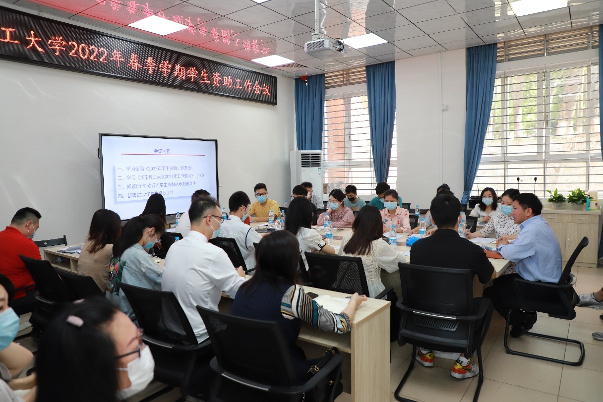 2022年4月8日,华南理工大学召开2022年春季学期学生资助工作会议,研讨在常态化疫情防控形势下如何做好学生资助各项工作,分析学生资助工作形势和方向,部署2022年学生资助工作,集中学习2022年全国学生资助工作要点及学校工作要点,解读2022年新修订的5个学生资助规章制度文件。学校学生资助管理中心全体人员及各院(系)负责学生资助工作辅导员参加了会议。
