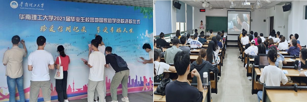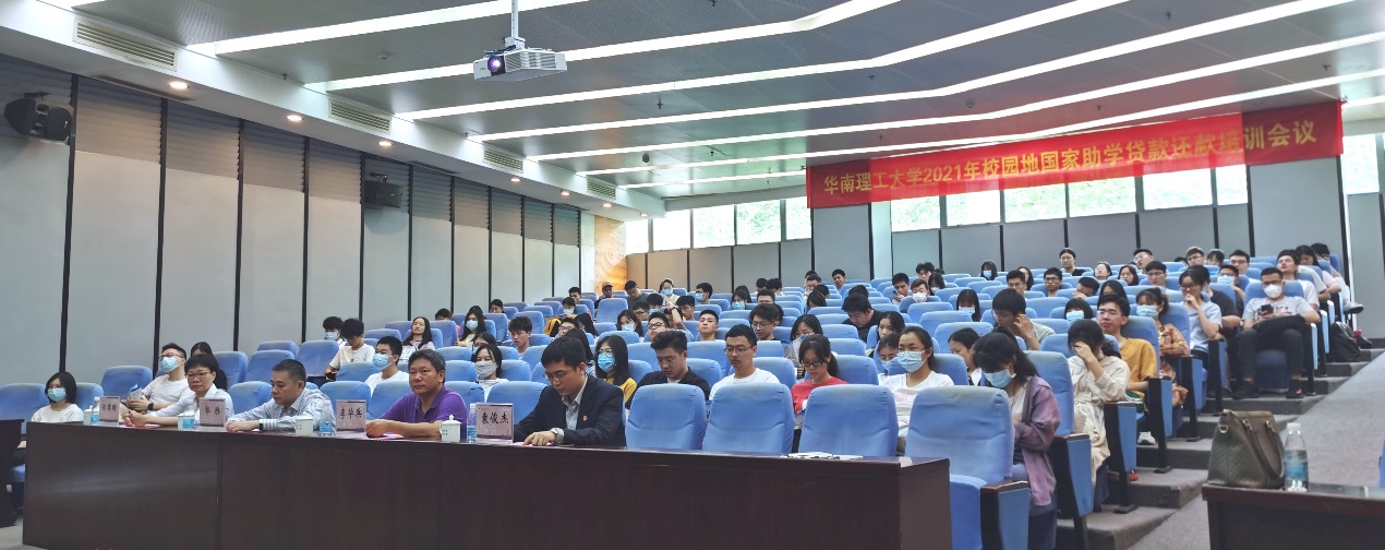 助学贷款圆梦求学路,诚信还款感恩祖国情。为深入推进资助育人,将诚信教育与育人活动紧密结合,开展资助诚信教育主题活动,结合党史学习教育,为师生办实事实践活动,帮助毕业生了解助学贷款还款手续,提高征信意识,同时结合近期发生的诈骗案例,提醒学生注意加强个人财产安全防范意识,华南理工大学联合中国银行广州天河支行,于5月25日分别在五山校区、大学城校区举行了2021年校园地国家助学贷款还款培训活动,全校300多名国家助学贷款毕业生参加了活动,学校学生工作部(处)和中国银行广州市天河支行相关负责人出席活动。