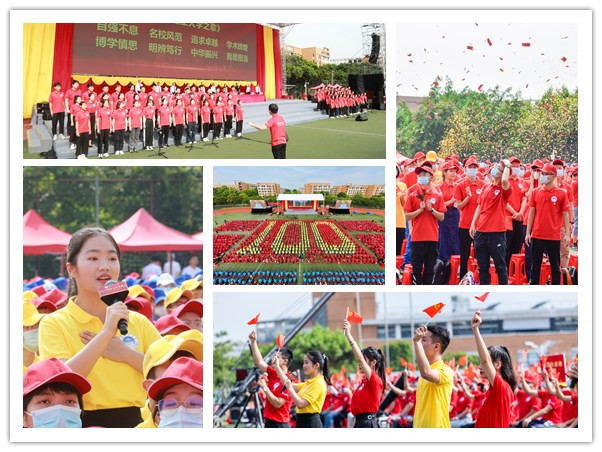 传承红色基因,厚植家国情怀,勇担历史重任,引领时代前行,整个典礼贯穿着党史学习教育和校史校情教育的内容。知名校友和海外高校的视频“云”寄语给新生带来惊喜礼物,大型音诗画节目《青春向党 理想当燃》让现场气氛达到高潮,《华南理工大学之歌》的大合唱宣告新生开学典礼圆满结束。